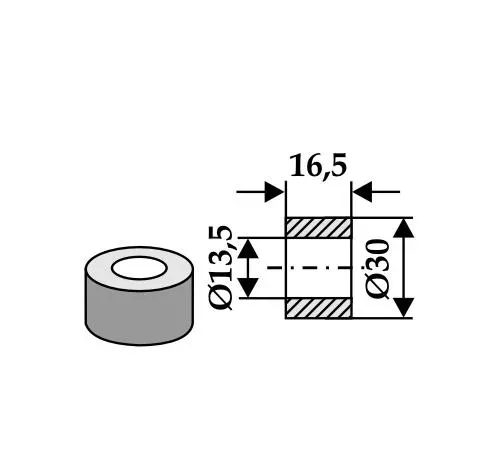Bushing inside 13.5Ø x outside 30Ø x length 16.5 mm