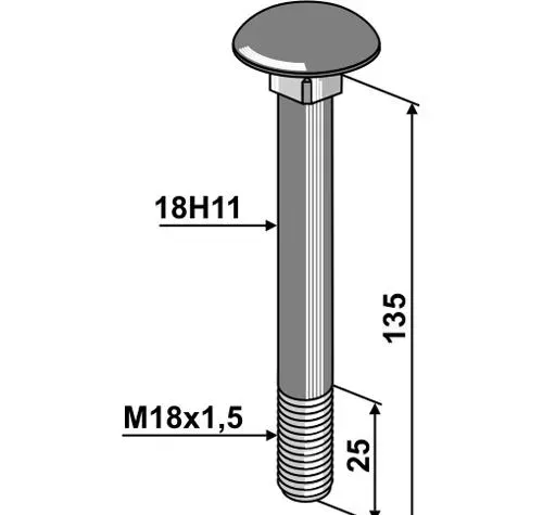 Carriage bolt M18x1.5x135 - 10.9, thread length 25 mm