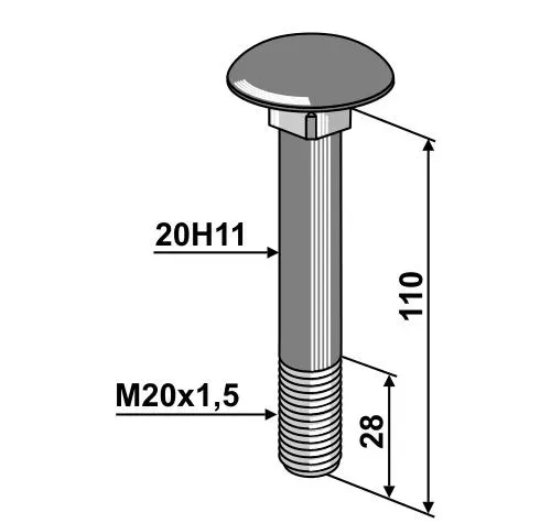 Carriage screw M20x1.5x110 - 10.9, thread length 28 mm