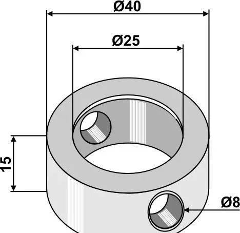 Clamping ring inside 25Ø x outside 40Ø x height 15 mm, dowel pin hole 8 mm