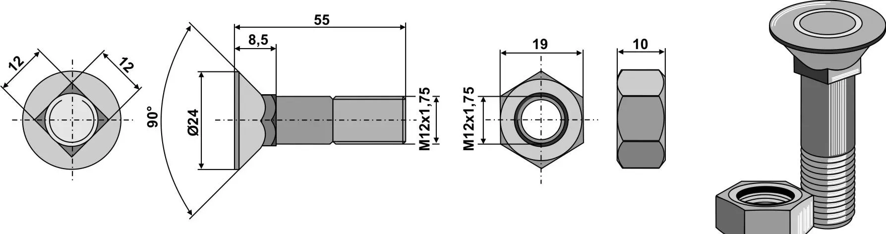 Plough bolt