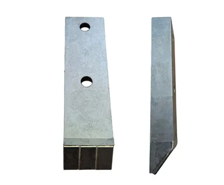 Reinforced forged steel with hard electrode surface treatment + Carbide plates brazed directly onto the steel forged body