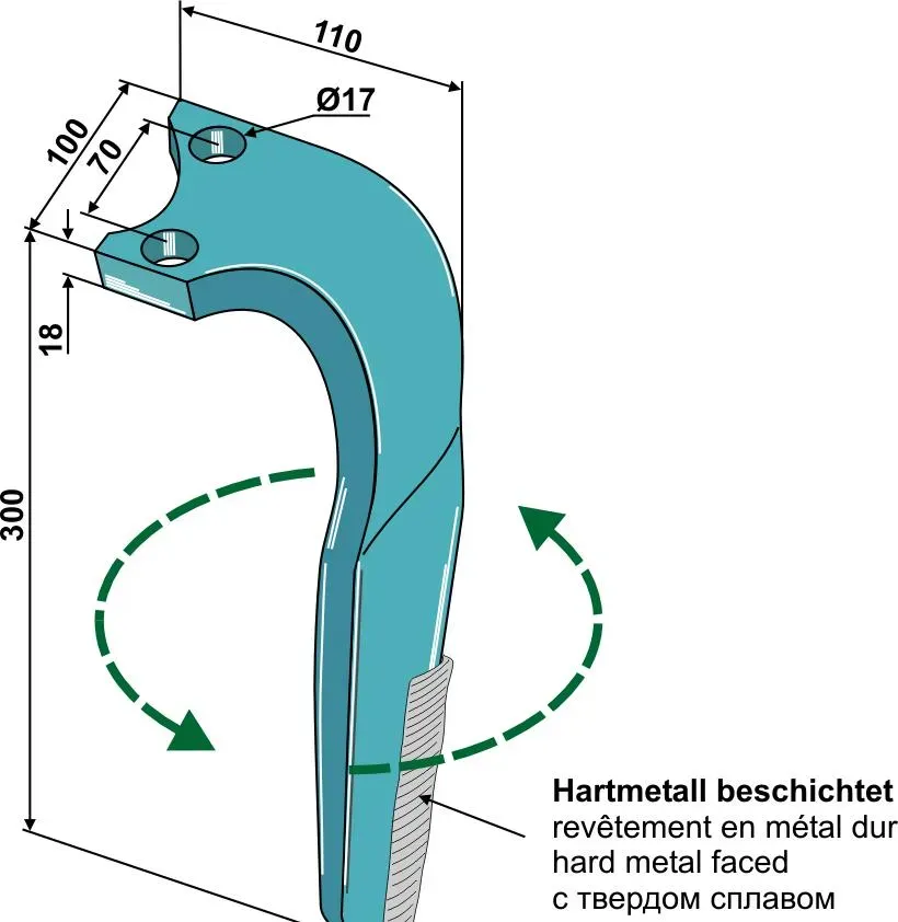 Púas de grada rotativa, revestidas